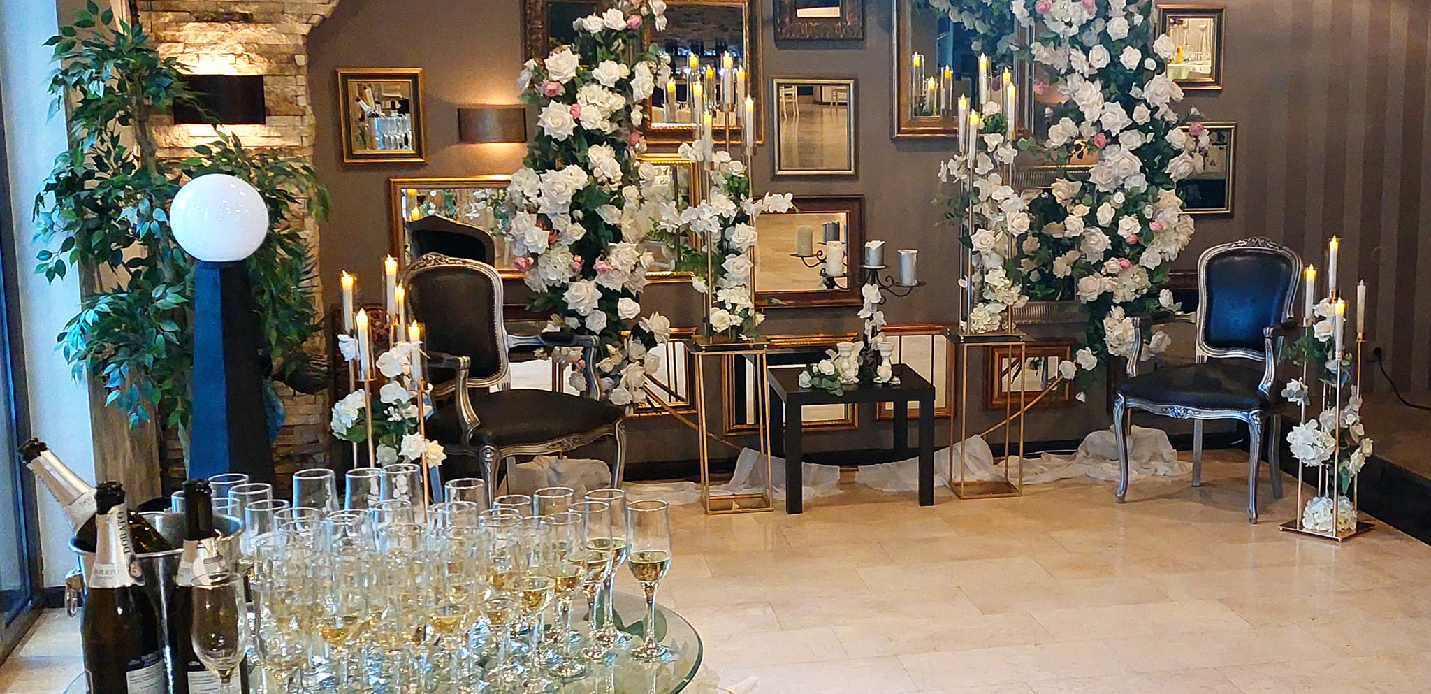 Fie ca va doriti o seara de eleganta aristocratica si lux discret sau optati pentru o petrecere cu ritm si culoare, dans si buna dispozitie, ori pentru o nunta la cort de vis sau botez, va stam la dispozitie cu toate detaliile pentru a crea evenimentul perfect, de la arhitectura salii, aranjamentele scaunelor, decoratiunile florale, pana la meniuri ce satisfac orice exigenta, pregatite artistic de gastronomi renumiti, sau ambianta muzicala pe care o doriti.